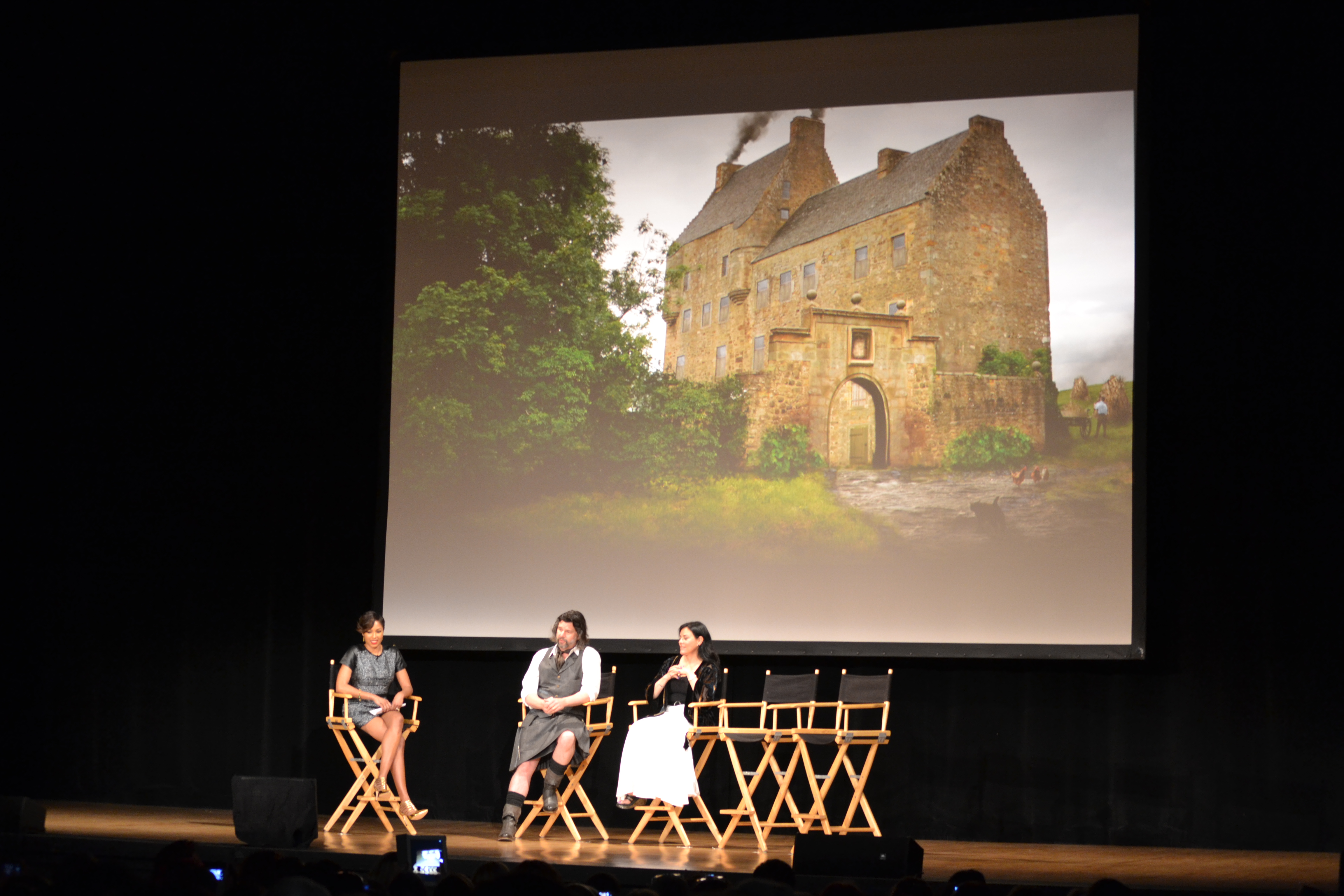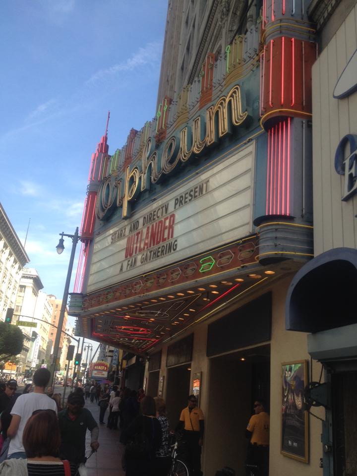 Hang on to your kilts! Thanks to the awesome people over at Starz, I was able take part in the Outlander fan event at the Orpheum Theatre in Los Angeles this weekend. Diana Gabaldon’s epic book series has been going strong for more than two decades now, and the action and romance is about to come to life on the small screen. Producer Ron Moore (of Star Trek and Battlestar Galactica fame) is bringing the story to life as a new Starz television series, to air this summer on the network. Fans from all over the country came to take part in a panel Q&A with author Gabaldon, producer Moore, and lead cast members Caitriona Balfe and Sam Heughan, who all took the chaos of the fandom completely in stride. The event kicked off with some amazing conceptual artwork for the sets of Outlander, all of which looked amazing. But the absolute best part of the afternoon was seeing the trailer for the very first time. You guys! Let’s talk about that trailer. Claire, ’40s fashion, WWII, standing stones, Jamie on a horse-need I say more? The footage looks incredible, and it leaves me DYING for the premiere (set for this summer)! Take a look at all the goodness below: