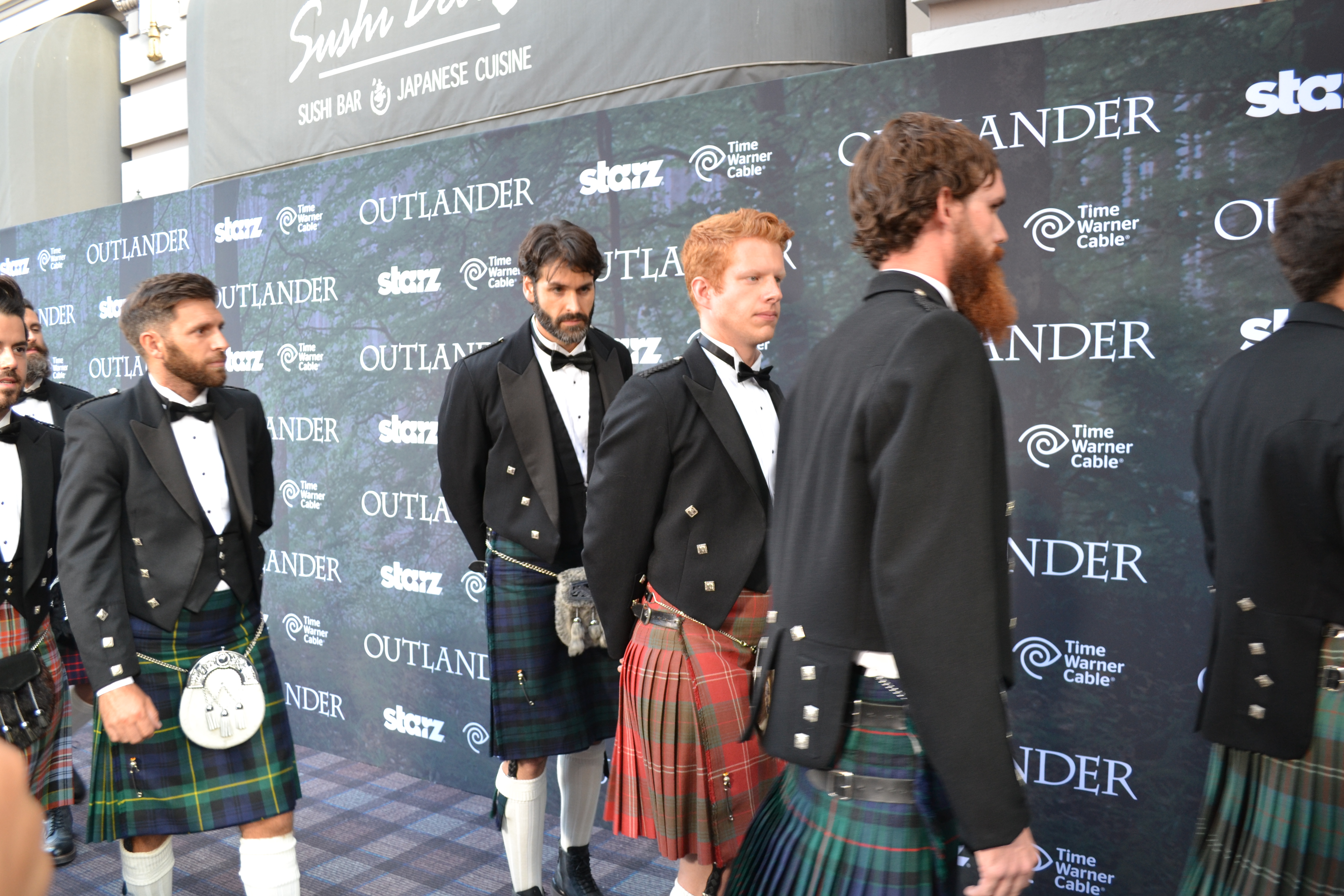 Now that I’ve come out of my Comic-Con haze, I’ve created a new gallery of all of my photos from Friday’s event. In the gallery below you’ll find all of my pics from the red carpet (or should we say tartan carpet) premiere, followed by the cast Q&A session with Sam, Cait, Lotte, Graham, Tobias, Diana, and Ron. The cast rolled up to the tartan carpet in classic 1940s cars, and followed bagpipers and lads in kilts onto the press line. After we had our chance to chat with the cast and crew, we all went inside the theatre and were treated to a performance by composer Bear McCreary, who played some classic Scottish tunes and debuted the theme he wrote for Claire and Jamie. Seeing the first episode on the big screen was truly a remarkable experience, and I I think it’s safe to say that I wasn’t the only one in the audience with goosebumps and a lump in their throat. The first episode was everything I could hope for (the second, which I screened before the premiere, is just as good, but that’s all I’ll say for now). I don’t think you will be disappointed with the show. Starz and the cast and crew have done an amazing job, and it’s everything I could hope for and more. Hope you enjoy the pics from this very epic night!